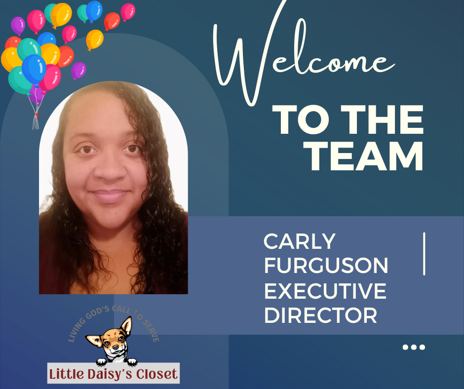 Carly Ferguson will serve as the new Executive Director of Little Daisy’s Closet, furthering strategic leadership grounded in Christian faith, integrity, and servant leadership. With a deep sense of calling, Carly is committed to advancing the mission of Christ and community through compassionate service, organizational excellence, and faithful stewardship.
